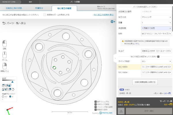 | こんな時にオススメ | 複雑な形状や樹脂材料が必要な場合 | 安く、でも早く欲しい場合 | 寸法、はめあい等の公差指定が必要な場合 |