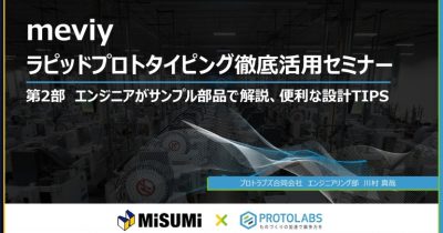 株式会社ミスミとプロトラブズ合同会社の共催で「meviy ラピッドプロトタイピング徹底活用セミナー(初級編)」がオンラインで開催されました。 当日は2部構成で、第1部は「イチからわかる! meviy ...
