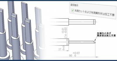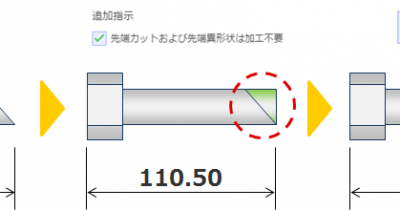 ピンの先端形状を社内で加工されるお客様に朗報です。meviyの追加指示「先端カットおよび先端異形状は加工不要」で、今回新たに取り代の指定が出来るようになりました! 加工用に最終形状にコンマ数ミリの取り...