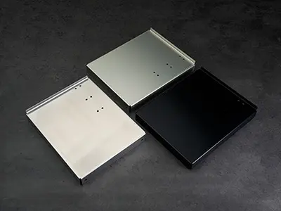 - 一般素材は「2B材」「No.1材」、表面の光沢が必要な場合は「磨き材」と呼ばれる「片面#400研磨」、高級感などの装飾を施す場合は「片面ヘアライン」がよく選ばれます。